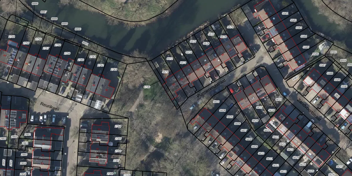 Gebruik de zoekbalk of klik op een perceel voor informatie over de adressen binnen dit perceel.