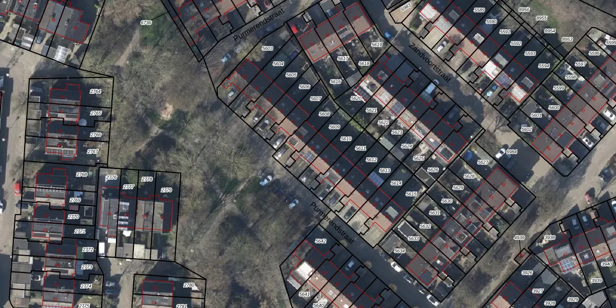 Gebruik de zoekbalk of klik op een perceel voor informatie over de adressen binnen dit perceel.