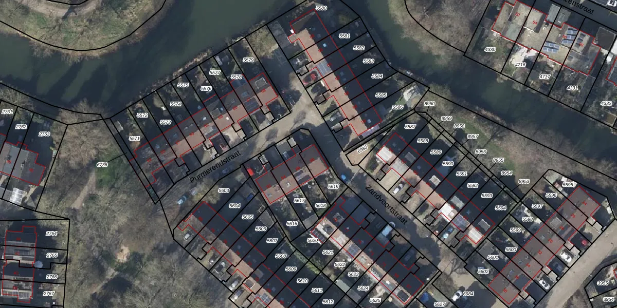 Gebruik de zoekbalk of klik op een perceel voor informatie over de adressen binnen dit perceel.