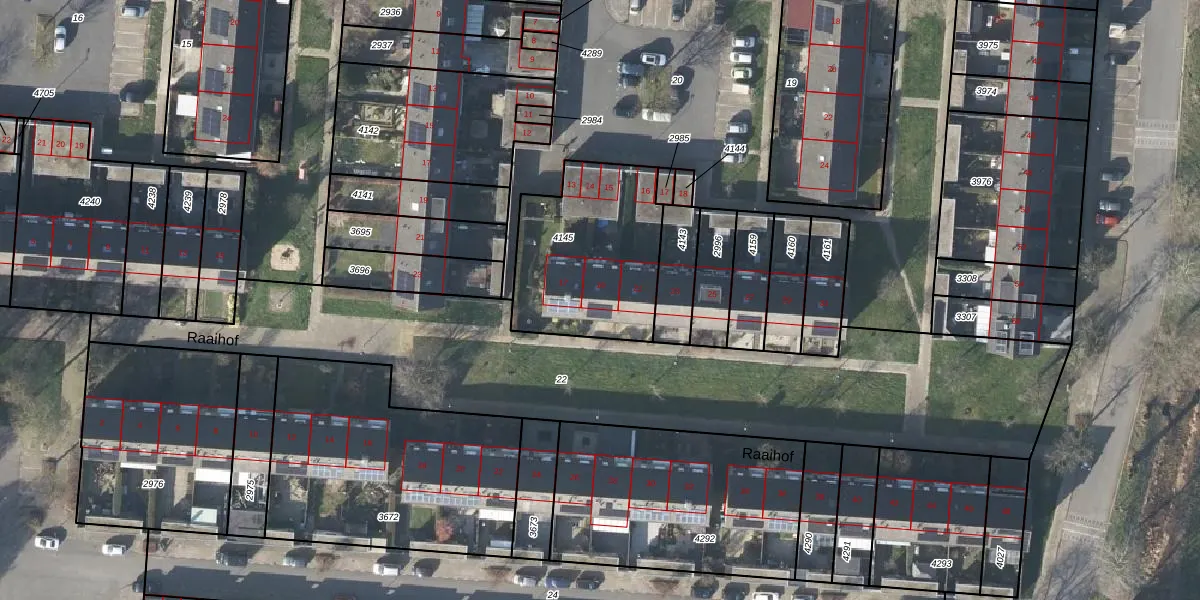 Raaihof 19 is gelegen op kadastraal perceel AHM01W4145. Deze kadastrale aanduiding is uniek en wordt gebruikt door het Kadaster om eigendomsrechten en andere zakelijke rechten vast te leggen. Het perceel maakt onderdeel uit van de kadastrale gemeente Arnhem.