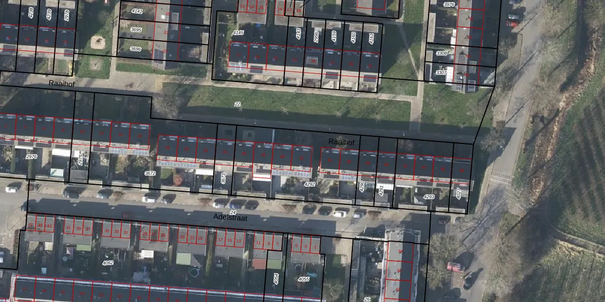 Het perceel waarop Raaihof 32 staat heeft een oppervlakte van 947 m². Dit is een groot perceel. De perceeloppervlakte wordt geregistreerd door het Kadaster. Gedetailleerde informatie over de maten van dit perceel kunt u vinden in het rapport Kadastrale kaart met maatvoering van Raaihof 32.