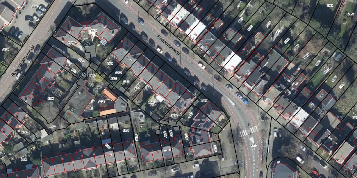 Het perceel waarop Raapopseweg 39 staat heeft een oppervlakte van 565 m². Dit is een groot perceel. De perceeloppervlakte wordt geregistreerd door het Kadaster. Gedetailleerde informatie over de maten van dit perceel kunt u vinden in het rapport Kadastrale kaart met maatvoering van Raapopseweg 39.