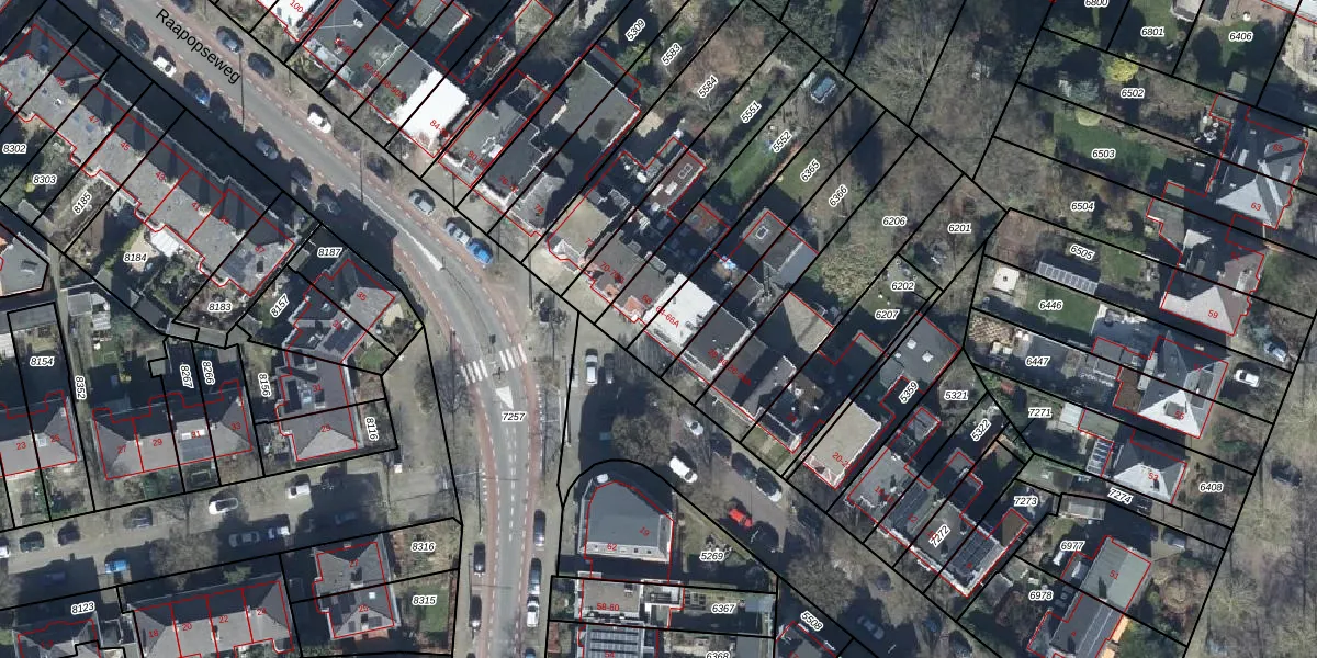 Het perceel waarop Raapopseweg 66-A staat heeft een oppervlakte van 340 m². Dit is een groot perceel. De perceeloppervlakte wordt geregistreerd door het Kadaster. Gedetailleerde informatie over de maten van dit perceel kunt u vinden in het rapport Kadastrale kaart met maatvoering van Raapopseweg 66-A.