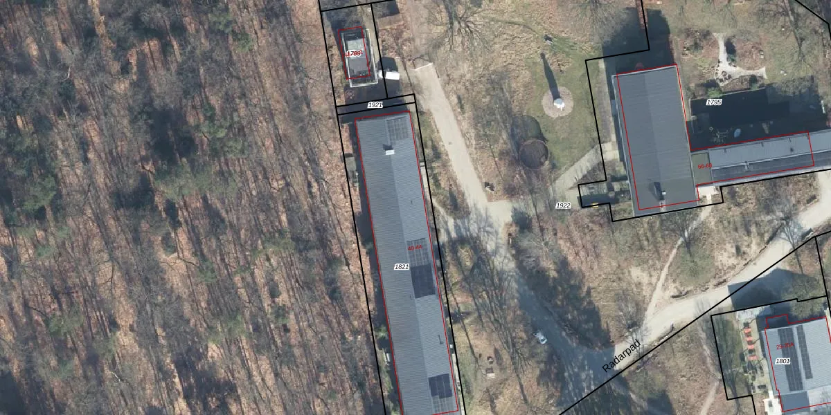 Het perceel waarop Radarpad 44 staat heeft een oppervlakte van 1470 m². Dit is een zeer groot perceel. De perceeloppervlakte wordt geregistreerd door het Kadaster. Gedetailleerde informatie over de maten van dit perceel kunt u vinden in het rapport Kadastrale kaart met maatvoering van Radarpad 44.