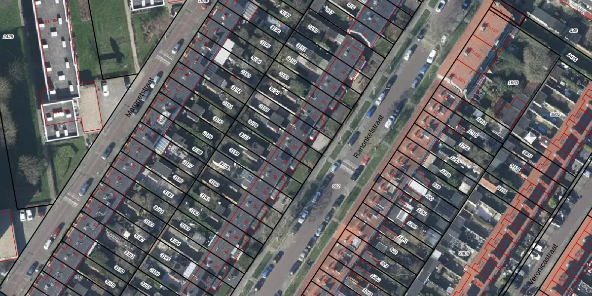 Gebruik de zoekbalk of klik op een perceel voor informatie over de adressen binnen dit perceel.