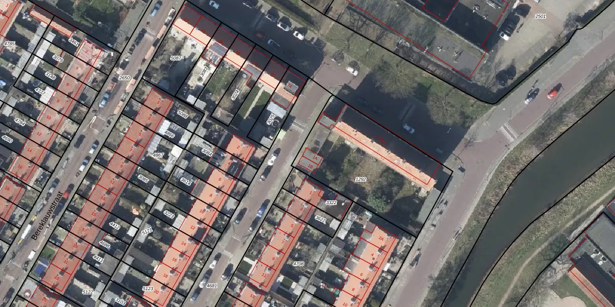 Het perceel waarop Ratelaarstraat 1-A staat heeft een oppervlakte van 1240 m². Dit is een zeer groot perceel. De perceeloppervlakte wordt geregistreerd door het Kadaster. Gedetailleerde informatie over de maten van dit perceel kunt u vinden in het rapport Kadastrale kaart met maatvoering van Ratelaarstraat 1-A.