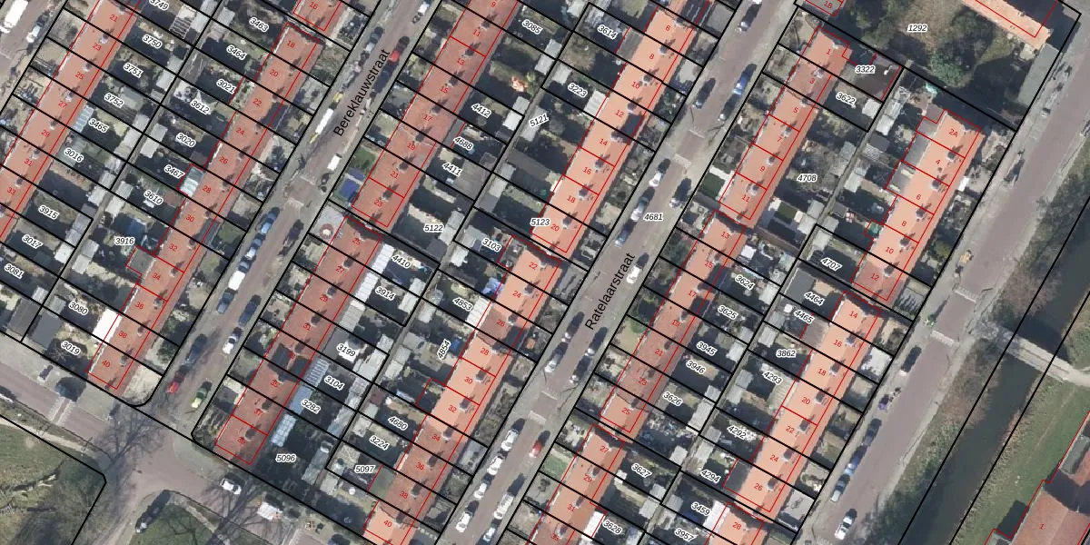 Het perceel waarop Ratelaarstraat 22 staat heeft een oppervlakte van 175 m². Dit is een middelgroot perceel. De perceeloppervlakte wordt geregistreerd door het Kadaster. Gedetailleerde informatie over de maten van dit perceel kunt u vinden in het rapport Kadastrale kaart met maatvoering van Ratelaarstraat 22.