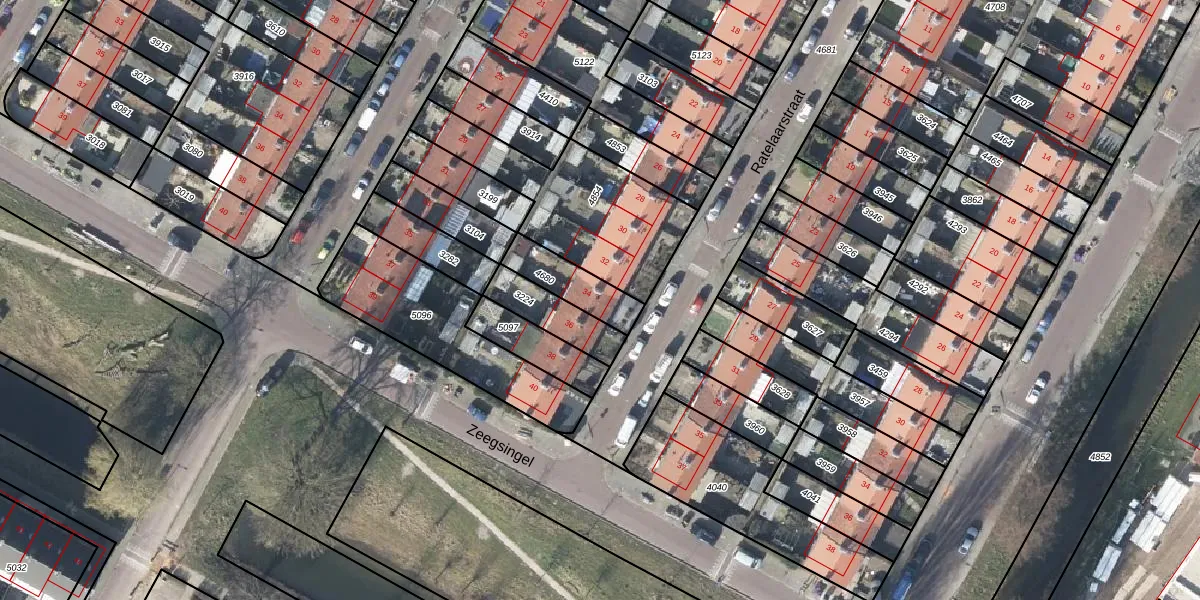 Het perceel waarop Ratelaarstraat 34 staat heeft een oppervlakte van 147 m². Dit is een middelgroot perceel. De perceeloppervlakte wordt geregistreerd door het Kadaster. Gedetailleerde informatie over de maten van dit perceel kunt u vinden in het rapport Kadastrale kaart met maatvoering van Ratelaarstraat 34.
