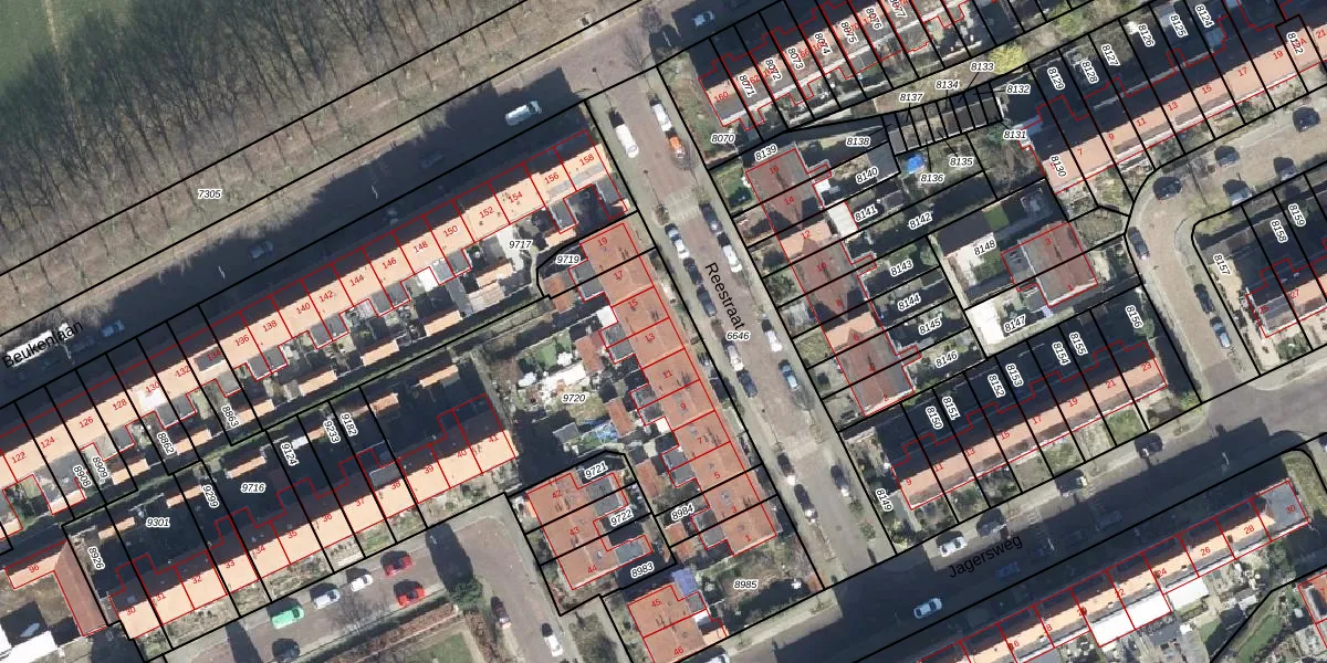 Het perceel waarop Reestraat 13 staat heeft een oppervlakte van 1430 m². Dit is een zeer groot perceel. De perceeloppervlakte wordt geregistreerd door het Kadaster. Gedetailleerde informatie over de maten van dit perceel kunt u vinden in het rapport Kadastrale kaart met maatvoering van Reestraat 13.