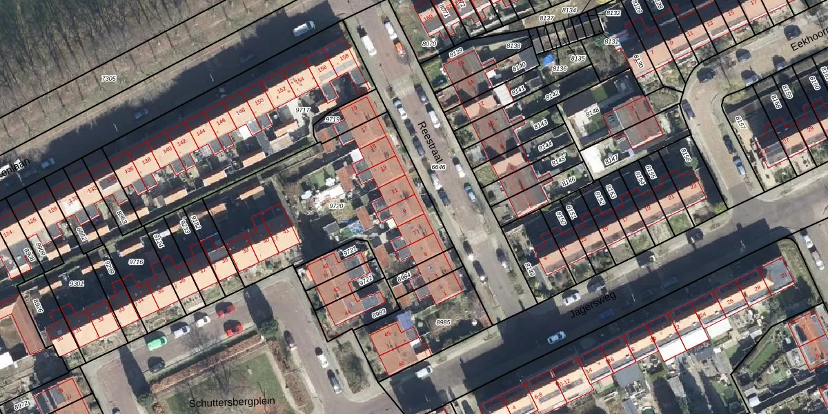 Het perceel waarop Reestraat 9 staat heeft een oppervlakte van 1430 m². Dit is een zeer groot perceel. De perceeloppervlakte wordt geregistreerd door het Kadaster. Gedetailleerde informatie over de maten van dit perceel kunt u vinden in het rapport Kadastrale kaart met maatvoering van Reestraat 9.