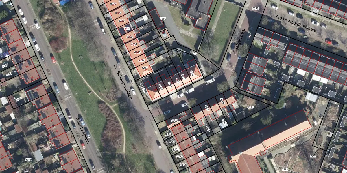 Gebruik de zoekbalk of klik op een perceel voor informatie over de adressen binnen dit perceel.