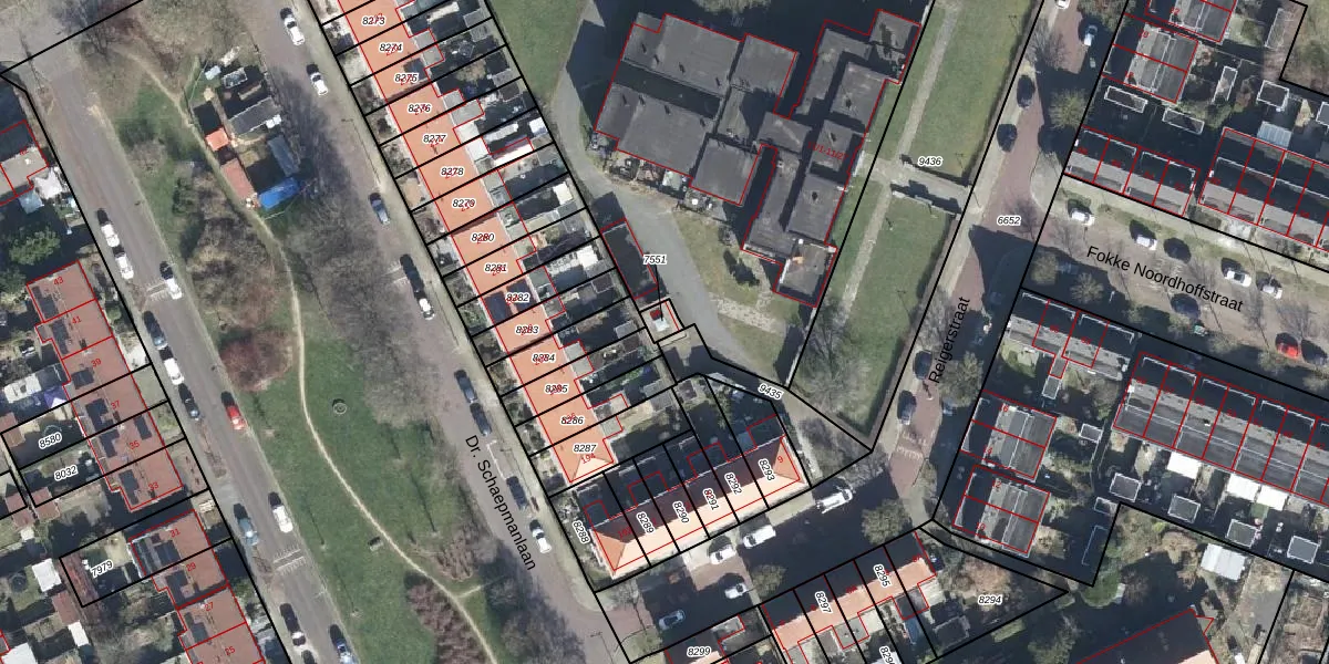 Gebruik de zoekbalk of klik op een perceel voor informatie over de adressen binnen dit perceel.