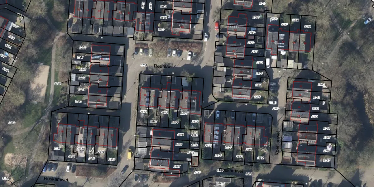 Gebruik de zoekbalk of klik op een perceel voor informatie over de adressen binnen dit perceel.