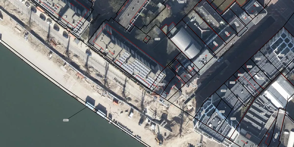 Rijnkade 38-7 is gelegen op kadastraal perceel AHM01O8155. Deze kadastrale aanduiding is uniek en wordt gebruikt door het Kadaster om eigendomsrechten en andere zakelijke rechten vast te leggen. Het perceel maakt onderdeel uit van de kadastrale gemeente Arnhem.