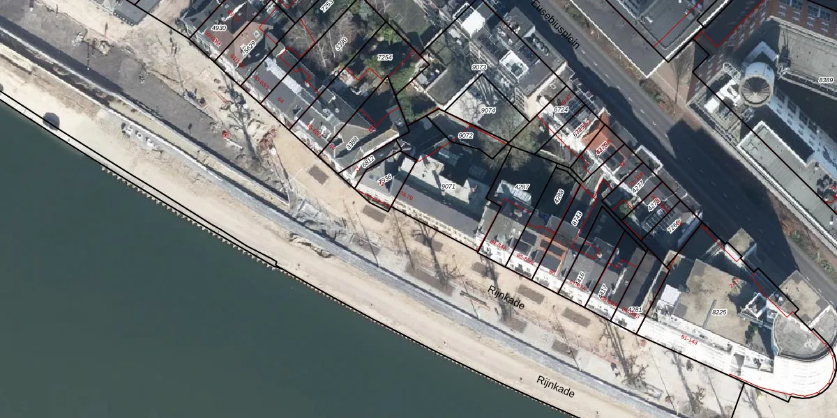 Rijnkade 75 is gelegen op kadastraal perceel AHM01O9071. Deze kadastrale aanduiding is uniek en wordt gebruikt door het Kadaster om eigendomsrechten en andere zakelijke rechten vast te leggen. Het perceel maakt onderdeel uit van de kadastrale gemeente Arnhem.