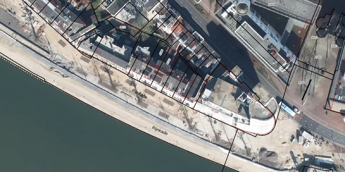 Rijnkade 87-1 is gelegen op kadastraal perceel AHM01O4416. Deze kadastrale aanduiding is uniek en wordt gebruikt door het Kadaster om eigendomsrechten en andere zakelijke rechten vast te leggen. Het perceel maakt onderdeel uit van de kadastrale gemeente Arnhem.