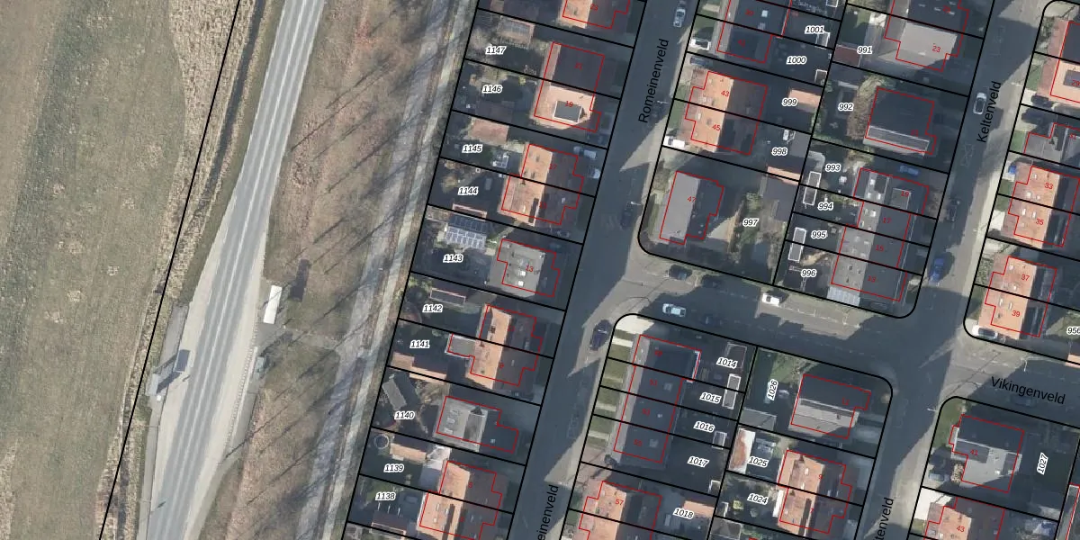 Het perceel waarop Romeinenveld 13 staat heeft een oppervlakte van 384 m². Dit is een groot perceel. De perceeloppervlakte wordt geregistreerd door het Kadaster. Gedetailleerde informatie over de maten van dit perceel kunt u vinden in het rapport Kadastrale kaart met maatvoering van Romeinenveld 13.