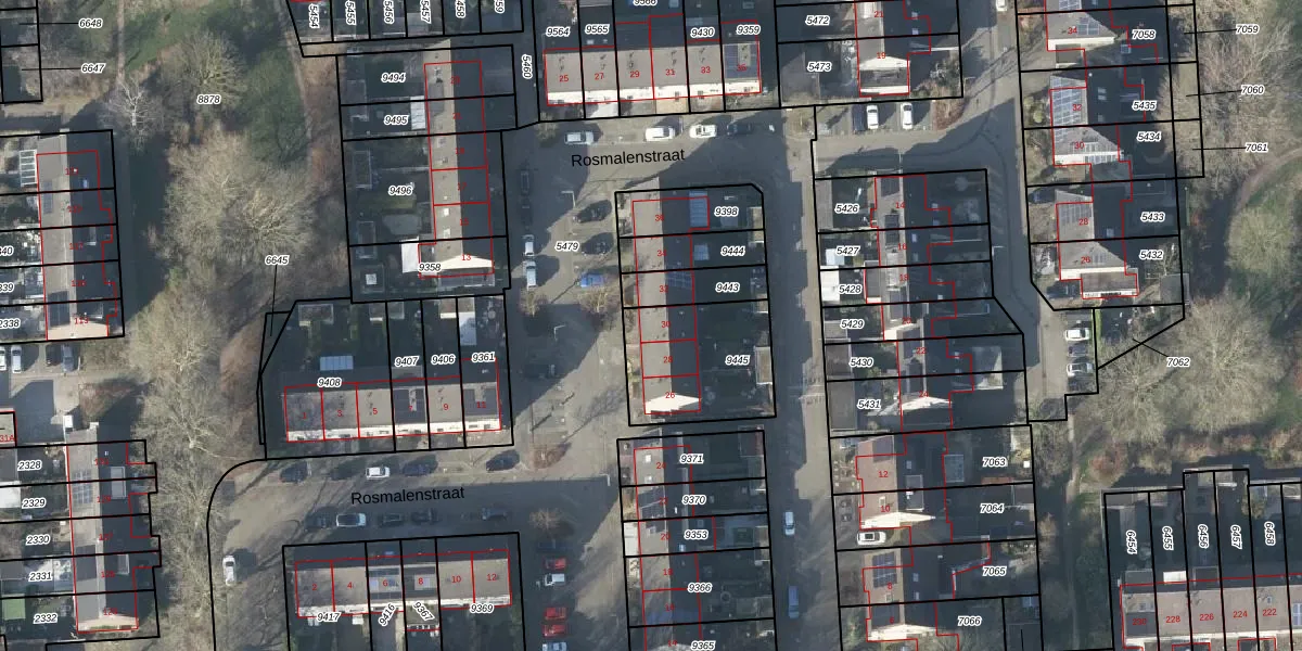 Het perceel waarop Rosmalenstraat 30 staat heeft een oppervlakte van 405 m². Dit is een groot perceel. De perceeloppervlakte wordt geregistreerd door het Kadaster. Gedetailleerde informatie over de maten van dit perceel kunt u vinden in het rapport Kadastrale kaart met maatvoering van Rosmalenstraat 30.