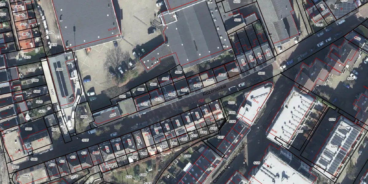 Het perceel waarop Rozenstraat 23 staat heeft een oppervlakte van 62 m². Dit is een klein perceel. De perceeloppervlakte wordt geregistreerd door het Kadaster. Gedetailleerde informatie over de maten van dit perceel kunt u vinden in het rapport Kadastrale kaart met maatvoering van Rozenstraat 23.