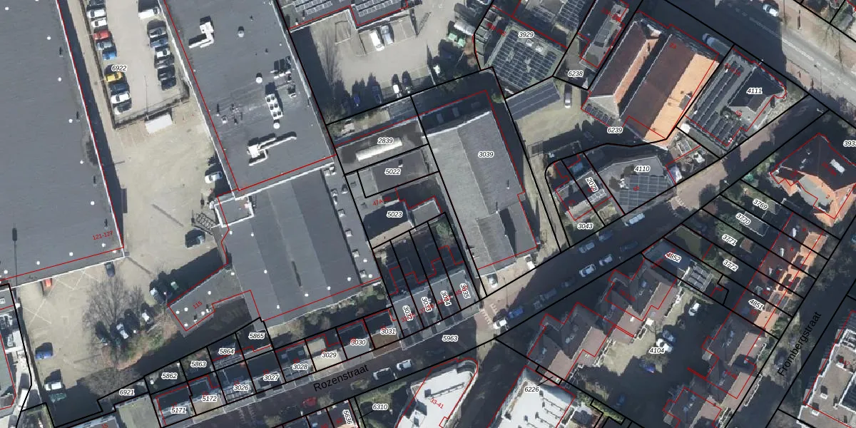Gebruik de zoekbalk of klik op een perceel voor informatie over de adressen binnen dit perceel.