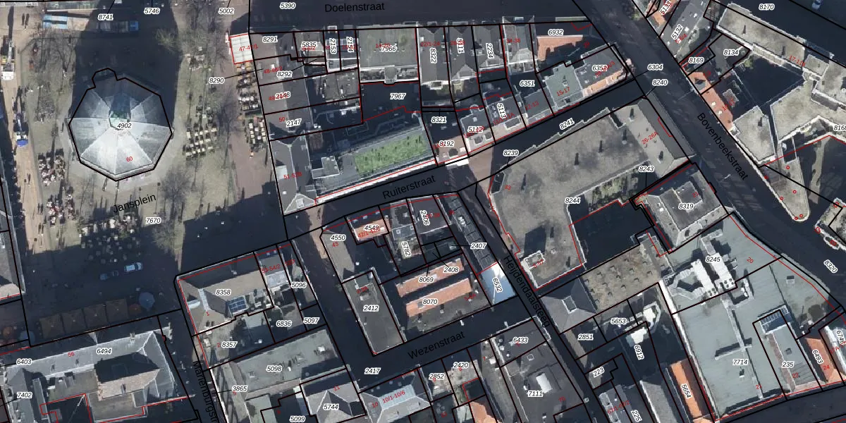 Het perceel waarop Ruiterstraat 37 staat heeft een oppervlakte van 84 m². Dit is een klein perceel. De perceeloppervlakte wordt geregistreerd door het Kadaster. Gedetailleerde informatie over de maten van dit perceel kunt u vinden in het rapport Kadastrale kaart met maatvoering van Ruiterstraat 37.
