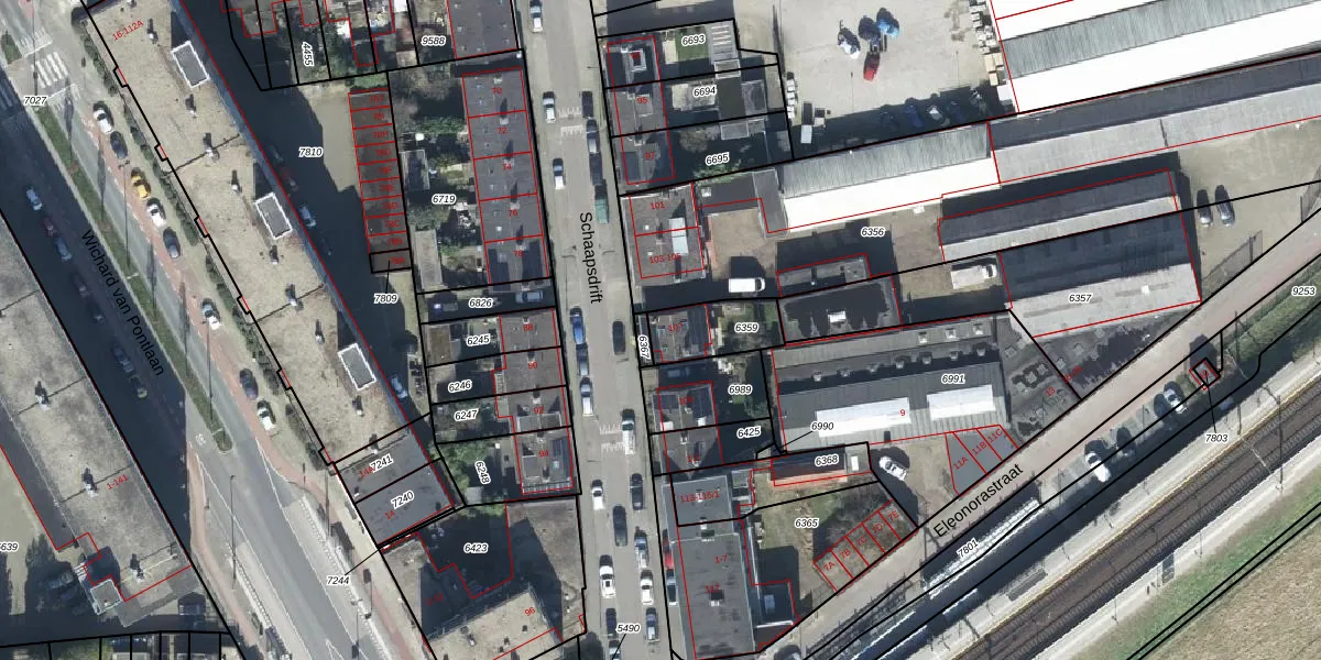 Schaapsdrift 107 is gelegen op kadastraal perceel AHM01Q6359. Deze kadastrale aanduiding is uniek en wordt gebruikt door het Kadaster om eigendomsrechten en andere zakelijke rechten vast te leggen. Het perceel maakt onderdeel uit van de kadastrale gemeente Arnhem.