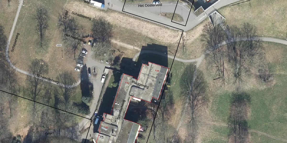 Het perceel waarop Schaddeweg 13 staat heeft een oppervlakte van 2,4 ha. Dit is een zeer groot perceel. De perceeloppervlakte wordt geregistreerd door het Kadaster. Gedetailleerde informatie over de maten van dit perceel kunt u vinden in het rapport Kadastrale kaart met maatvoering van Schaddeweg 13.