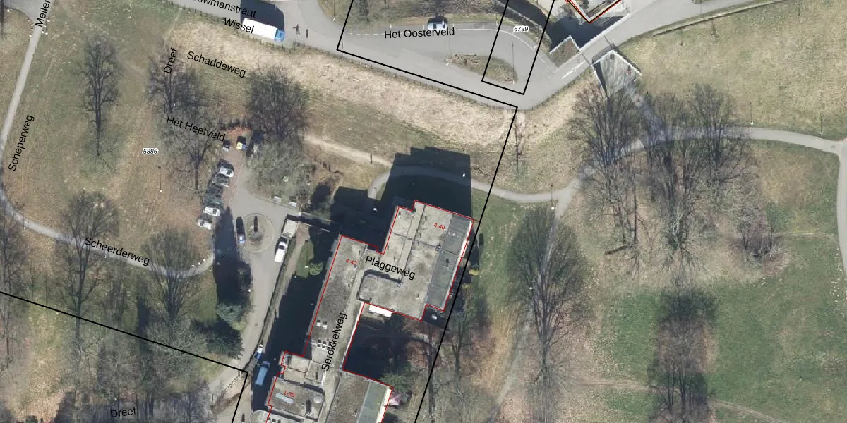 Het perceel waarop Schaddeweg 22 staat heeft een oppervlakte van 2,4 ha. Dit is een zeer groot perceel. De perceeloppervlakte wordt geregistreerd door het Kadaster. Gedetailleerde informatie over de maten van dit perceel kunt u vinden in het rapport Kadastrale kaart met maatvoering van Schaddeweg 22.