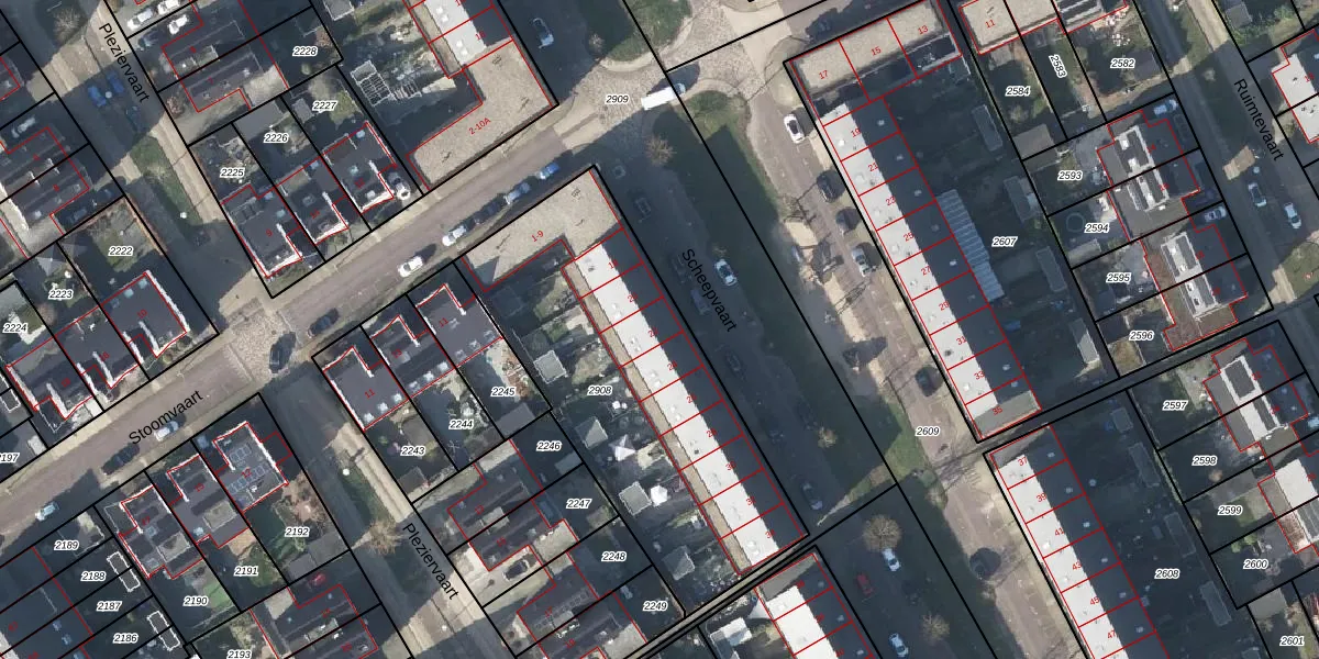Het perceel waarop Scheepvaart 22 staat heeft een oppervlakte van 1559 m². Dit is een zeer groot perceel. De perceeloppervlakte wordt geregistreerd door het Kadaster. Gedetailleerde informatie over de maten van dit perceel kunt u vinden in het rapport Kadastrale kaart met maatvoering van Scheepvaart 22.