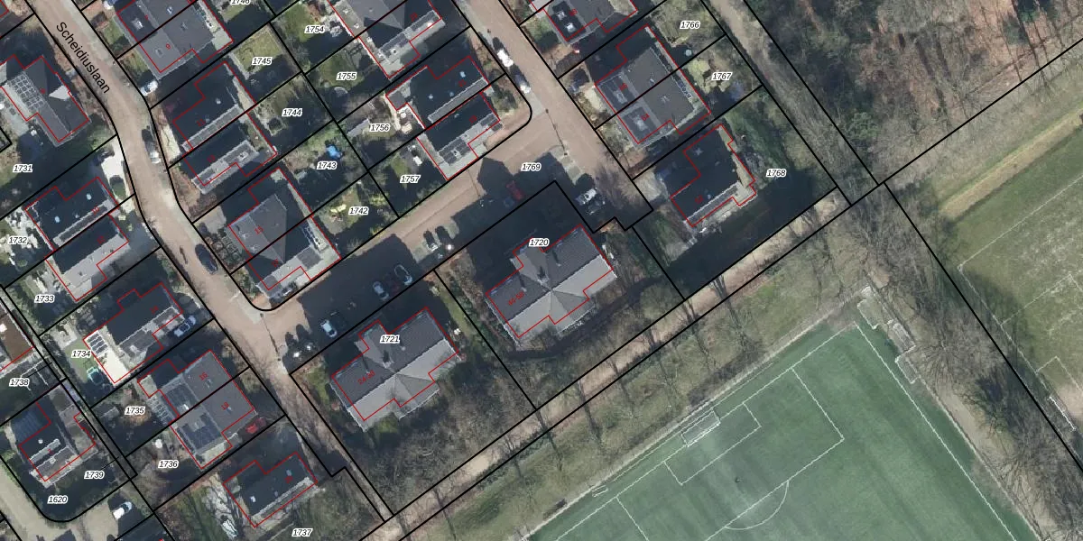 Het perceel waarop Scheidiuslaan 46 staat heeft een oppervlakte van 1020 m². Dit is een zeer groot perceel. De perceeloppervlakte wordt geregistreerd door het Kadaster. Gedetailleerde informatie over de maten van dit perceel kunt u vinden in het rapport Kadastrale kaart met maatvoering van Scheidiuslaan 46.