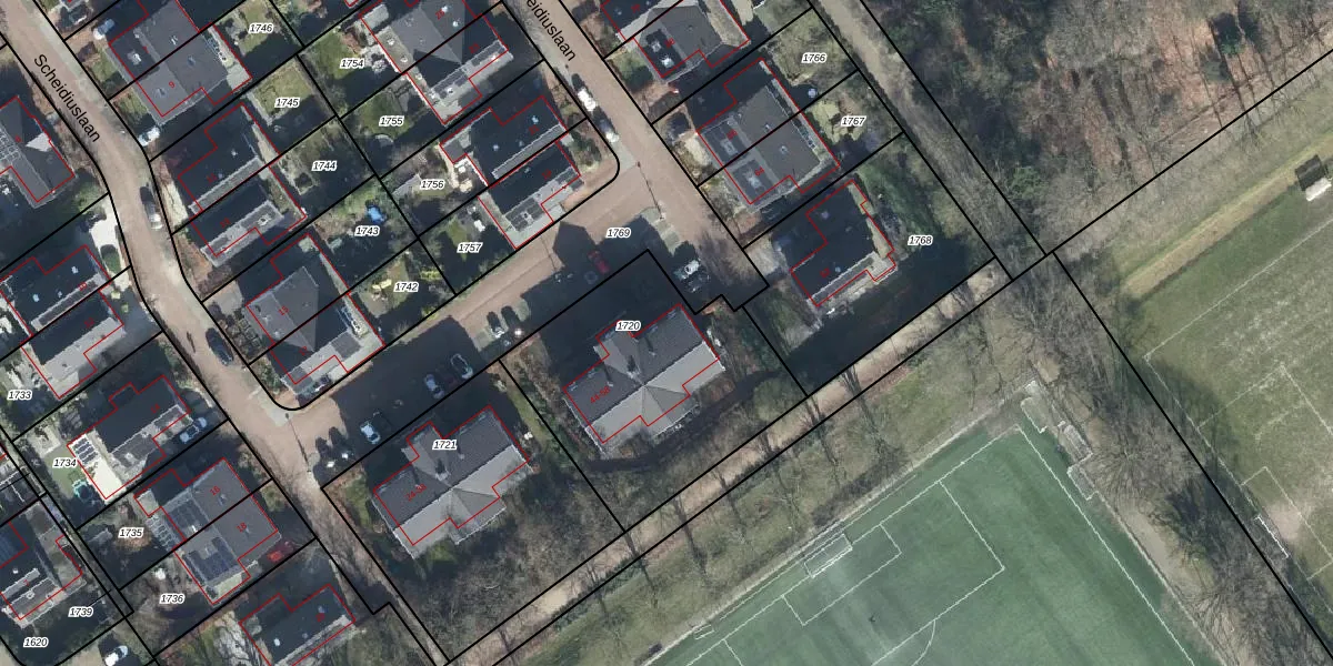 Het perceel waarop Scheidiuslaan 48 staat heeft een oppervlakte van 1020 m². Dit is een zeer groot perceel. De perceeloppervlakte wordt geregistreerd door het Kadaster. Gedetailleerde informatie over de maten van dit perceel kunt u vinden in het rapport Kadastrale kaart met maatvoering van Scheidiuslaan 48.