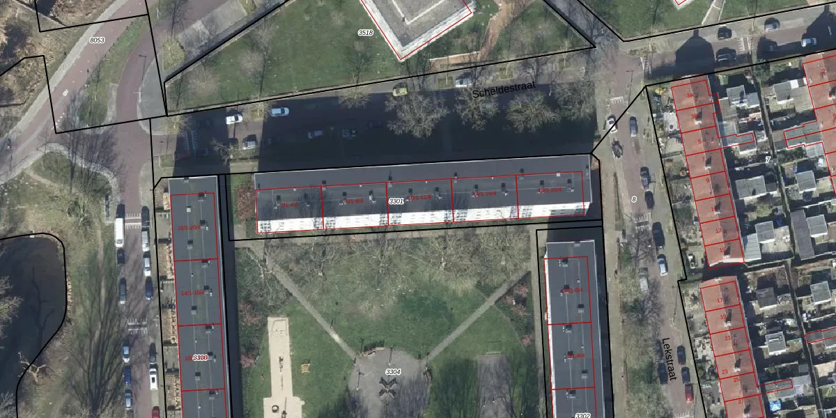 Het perceel waarop Scheldestraat 12-4 staat heeft een oppervlakte van 1430 m². Dit is een zeer groot perceel. De perceeloppervlakte wordt geregistreerd door het Kadaster. Gedetailleerde informatie over de maten van dit perceel kunt u vinden in het rapport Kadastrale kaart met maatvoering van Scheldestraat 12-4.