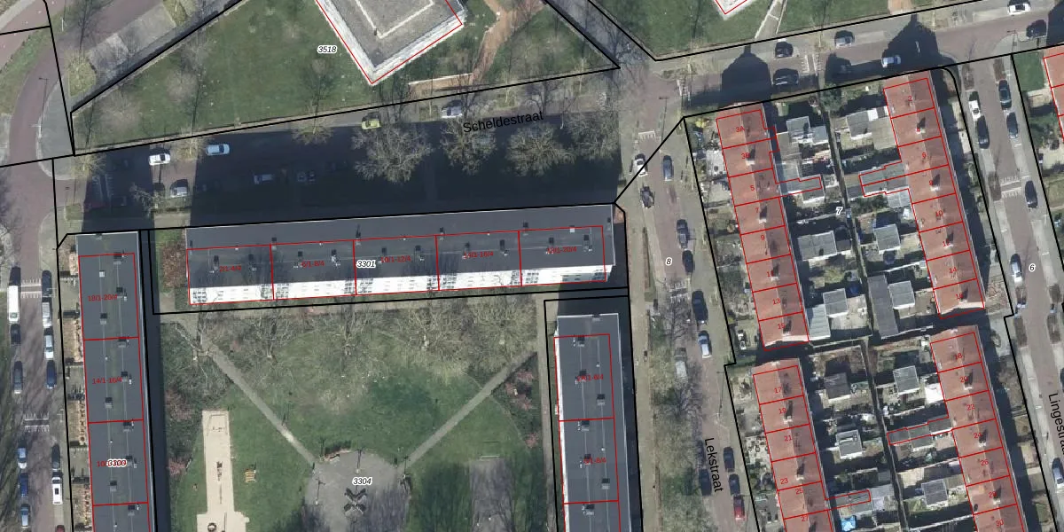 Het perceel waarop Scheldestraat 18-4 staat heeft een oppervlakte van 1430 m². Dit is een zeer groot perceel. De perceeloppervlakte wordt geregistreerd door het Kadaster. Gedetailleerde informatie over de maten van dit perceel kunt u vinden in het rapport Kadastrale kaart met maatvoering van Scheldestraat 18-4.