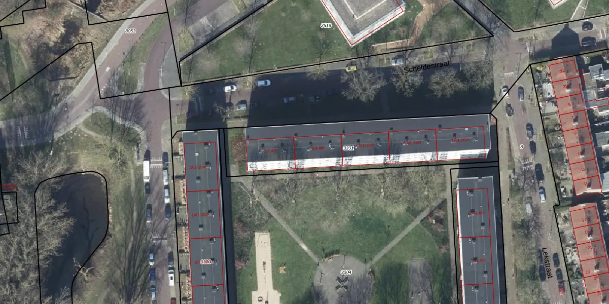 Het perceel waarop Scheldestraat 6-3 staat heeft een oppervlakte van 1430 m². Dit is een zeer groot perceel. De perceeloppervlakte wordt geregistreerd door het Kadaster. Gedetailleerde informatie over de maten van dit perceel kunt u vinden in het rapport Kadastrale kaart met maatvoering van Scheldestraat 6-3.