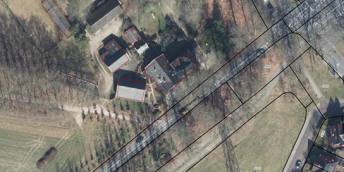 Het perceel waarop Schelmseweg 1 staat heeft een oppervlakte van 91,0 ha. Dit is een zeer groot perceel. De perceeloppervlakte wordt geregistreerd door het Kadaster. Gedetailleerde informatie over de maten van dit perceel kunt u vinden in het rapport Kadastrale kaart met maatvoering van Schelmseweg 1.
