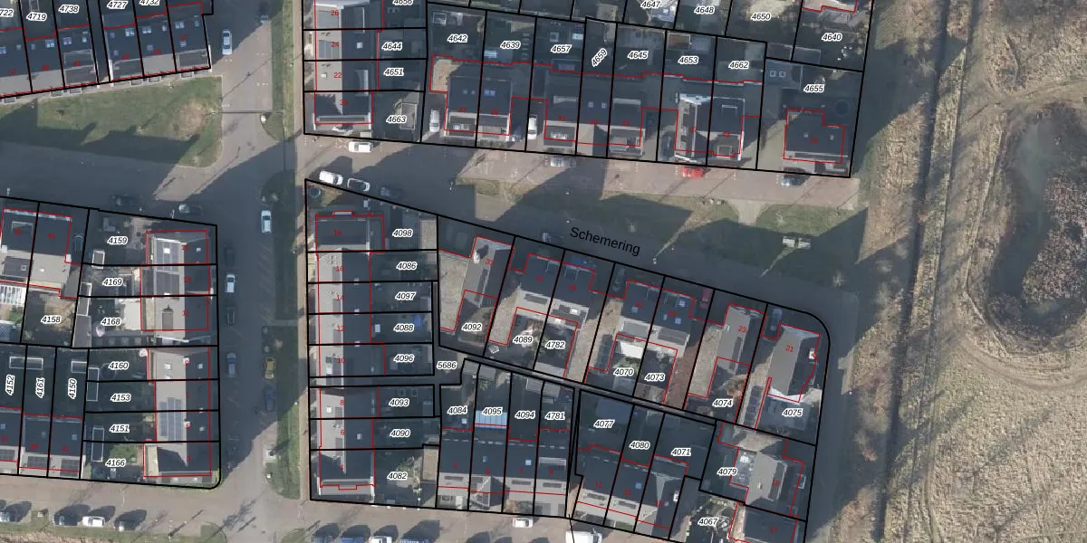 Het perceel waarop Schemering 31 staat heeft een oppervlakte van 220 m². Dit is een middelgroot perceel. De perceeloppervlakte wordt geregistreerd door het Kadaster. Gedetailleerde informatie over de maten van dit perceel kunt u vinden in het rapport Kadastrale kaart met maatvoering van Schemering 31.