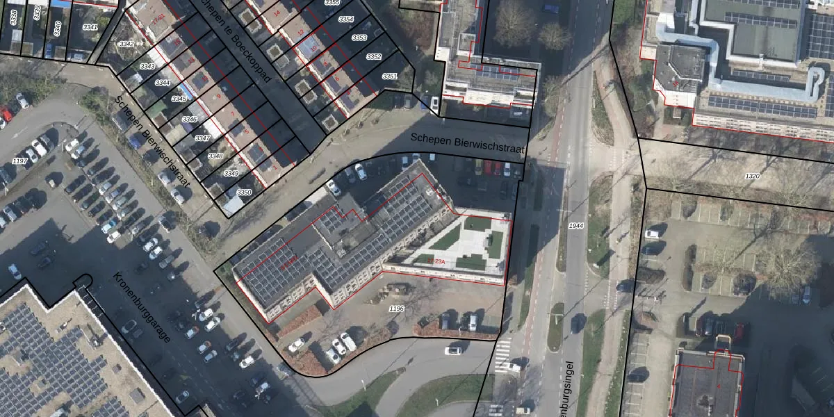 Het perceel waarop Schepen Bierwischstraat 5-19 staat heeft een oppervlakte van 2685 m². Dit is een zeer groot perceel. De perceeloppervlakte wordt geregistreerd door het Kadaster. Gedetailleerde informatie over de maten van dit perceel kunt u vinden in het rapport Kadastrale kaart met maatvoering van Schepen Bierwischstraat 5-19.