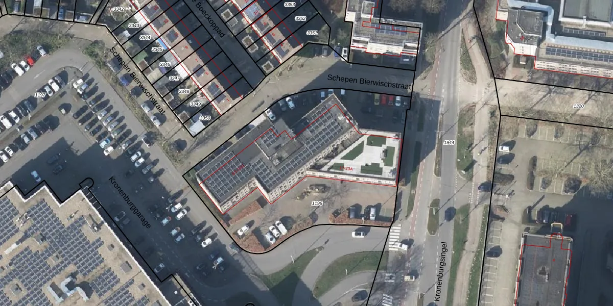 Het perceel waarop Schepen Bierwischstraat 5-23 staat heeft een oppervlakte van 2685 m². Dit is een zeer groot perceel. De perceeloppervlakte wordt geregistreerd door het Kadaster. Gedetailleerde informatie over de maten van dit perceel kunt u vinden in het rapport Kadastrale kaart met maatvoering van Schepen Bierwischstraat 5-23.
