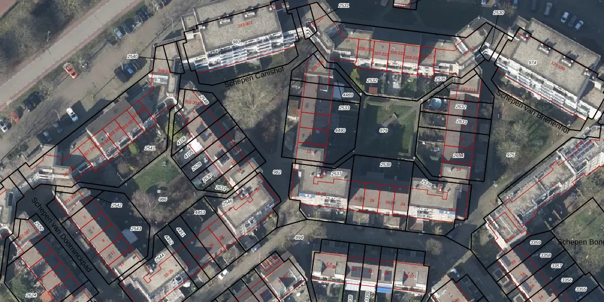 Schepen Canishof 13 is gelegen op kadastraal perceel AHM01W4490. Deze kadastrale aanduiding is uniek en wordt gebruikt door het Kadaster om eigendomsrechten en andere zakelijke rechten vast te leggen. Het perceel maakt onderdeel uit van de kadastrale gemeente Arnhem.