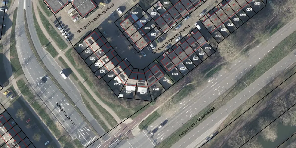Gebruik de zoekbalk of klik op een perceel voor informatie over de adressen binnen dit perceel.