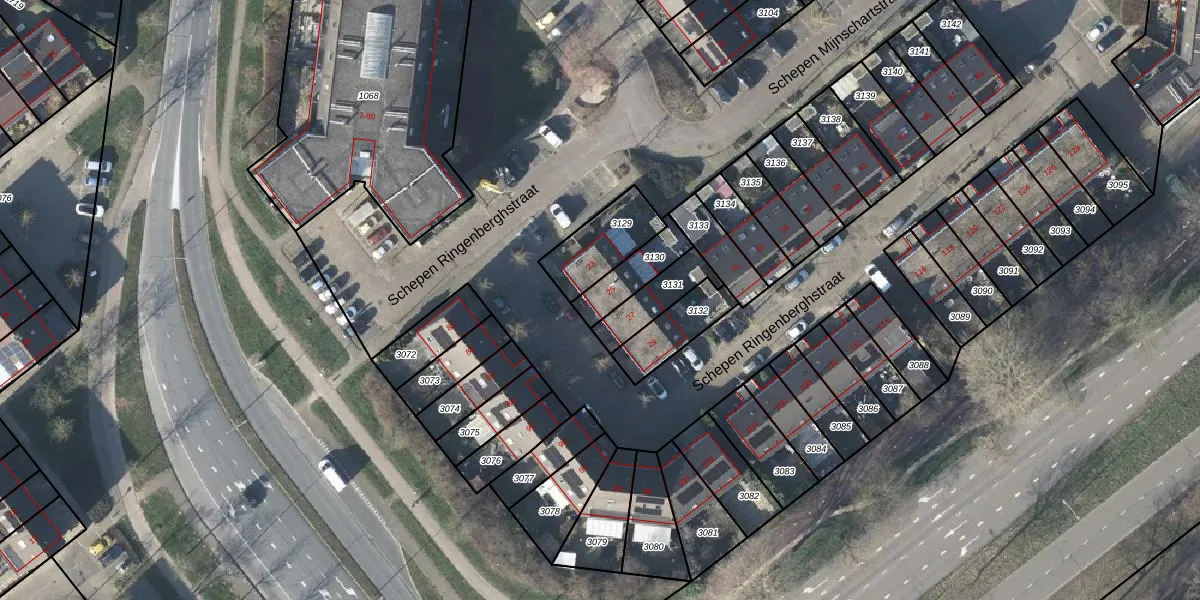 Gebruik de zoekbalk of klik op een perceel voor informatie over de adressen binnen dit perceel.