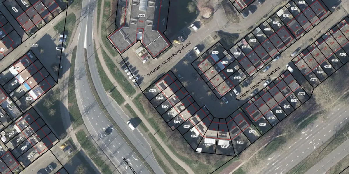 Gebruik de zoekbalk of klik op een perceel voor informatie over de adressen binnen dit perceel.