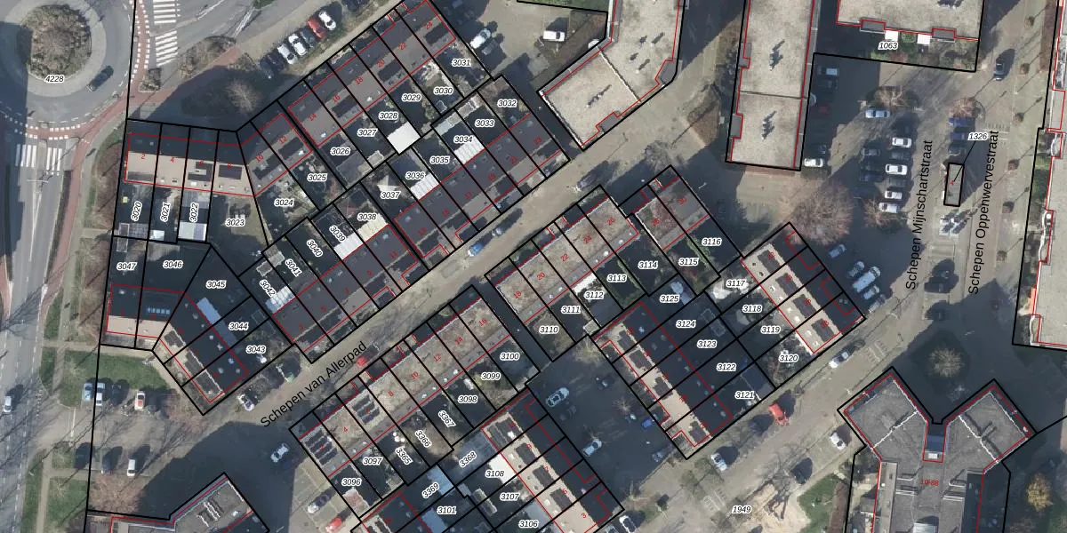 Gebruik de zoekbalk of klik op een perceel voor informatie over de adressen binnen dit perceel.