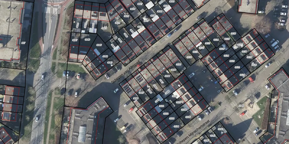 Gebruik de zoekbalk of klik op een perceel voor informatie over de adressen binnen dit perceel.