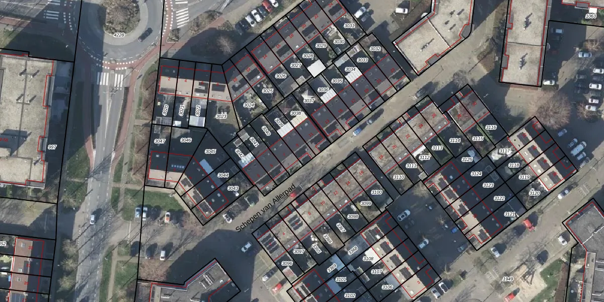 Gebruik de zoekbalk of klik op een perceel voor informatie over de adressen binnen dit perceel.