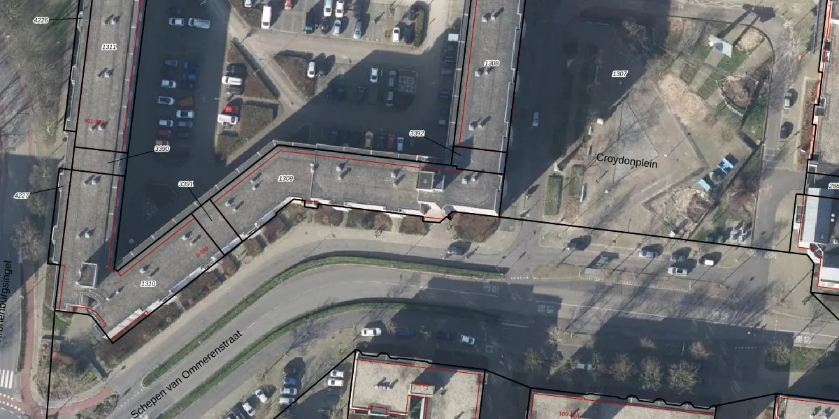 Het perceel waarop Schepen van Ommerenstraat 245 staat heeft een oppervlakte van 870 m². Dit is een groot perceel. De perceeloppervlakte wordt geregistreerd door het Kadaster. Gedetailleerde informatie over de maten van dit perceel kunt u vinden in het rapport Kadastrale kaart met maatvoering van Schepen van Ommerenstraat 245.