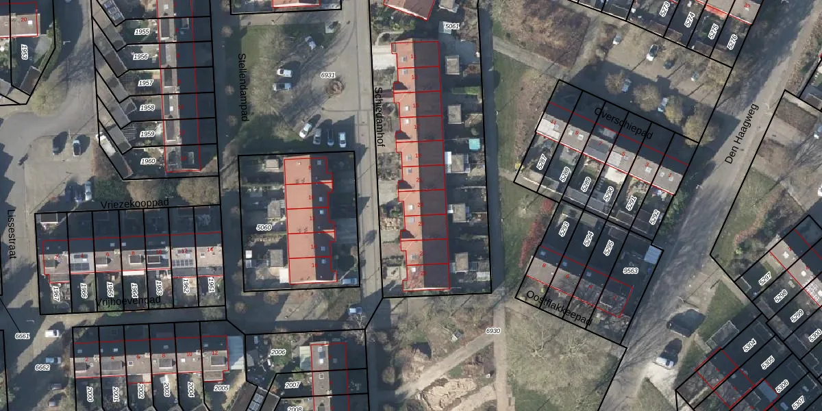 Het perceel waarop Schiedamhof 23 staat heeft een oppervlakte van 2655 m². Dit is een zeer groot perceel. De perceeloppervlakte wordt geregistreerd door het Kadaster. Gedetailleerde informatie over de maten van dit perceel kunt u vinden in het rapport Kadastrale kaart met maatvoering van Schiedamhof 23.