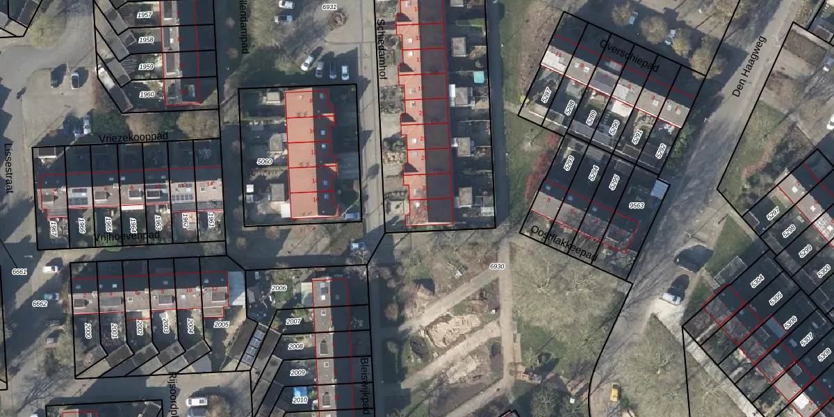 Het perceel waarop Schiedamhof 29 staat heeft een oppervlakte van 2655 m². Dit is een zeer groot perceel. De perceeloppervlakte wordt geregistreerd door het Kadaster. Gedetailleerde informatie over de maten van dit perceel kunt u vinden in het rapport Kadastrale kaart met maatvoering van Schiedamhof 29.