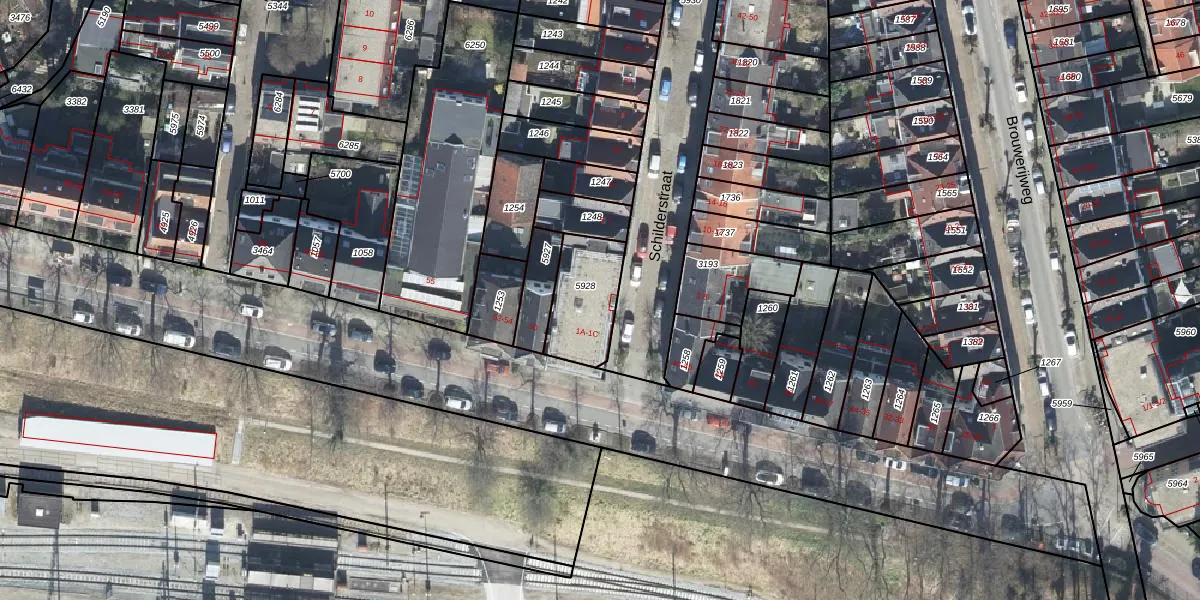 Het perceel waarop Schilderstraat 1-A staat heeft een oppervlakte van 222 m². Dit is een middelgroot perceel. De perceeloppervlakte wordt geregistreerd door het Kadaster. Gedetailleerde informatie over de maten van dit perceel kunt u vinden in het rapport Kadastrale kaart met maatvoering van Schilderstraat 1-A.