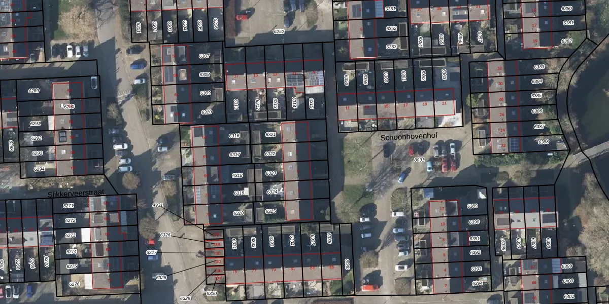 Gebruik de zoekbalk of klik op een perceel voor informatie over de adressen binnen dit perceel.
